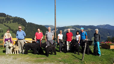 Im Laufe des Nachmittags gesellten sich noch Louisa und Christian mit Ilko, Shar und Arvène zu den „Steinerberg-Grillern“, welche unsere Gruppe vervollständigten und natürlich bereicherten. Am Abend traf sich die ganze Truppe zum feinen Nachtessen im Hotel Sternen. Nach einem gemütlichen Abend in geselliger Runde und einer letzten Gassirunde mit den Hunden, verzogen sich alsbald alle Zwei- und Vierbeiner zur wohlverdienten Ruhe. Auch der Sonntagmorgen versprach schönstes Herbstwetter. Paula musste sich leider nach dem Frühstück verabschieden, da sie zu einer Stellvertretung verdonnert wurde. So starteten wir nach dem Frühstück Richtung Risipass, von wo wir alle zusammen gemütlich zum Restaurant Risipass wanderten. Diese Strecke war sowohl für die beiden Baby-Russen wie auch für die alten oder ein wenig gehbehinderten „Russen-Tanten“ gut machbar. Im Restaurant liessen wir es uns gut gehen und wurden sehr freundlich bedient, obwohl Grossandrang herrschte an diesem wunderschönen Herbsttag. Christian und Hermann liessen es sich nicht entgehen, nochmals eine „Monsterwanderung“ mit fantastischer Aussicht zu unternehmen. Leider konnten sie danach jedoch nicht mehr einkehren, da wir uns schon zum Aufbruch bereit gemacht hatten …