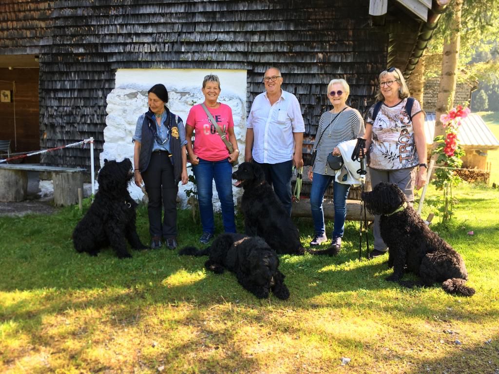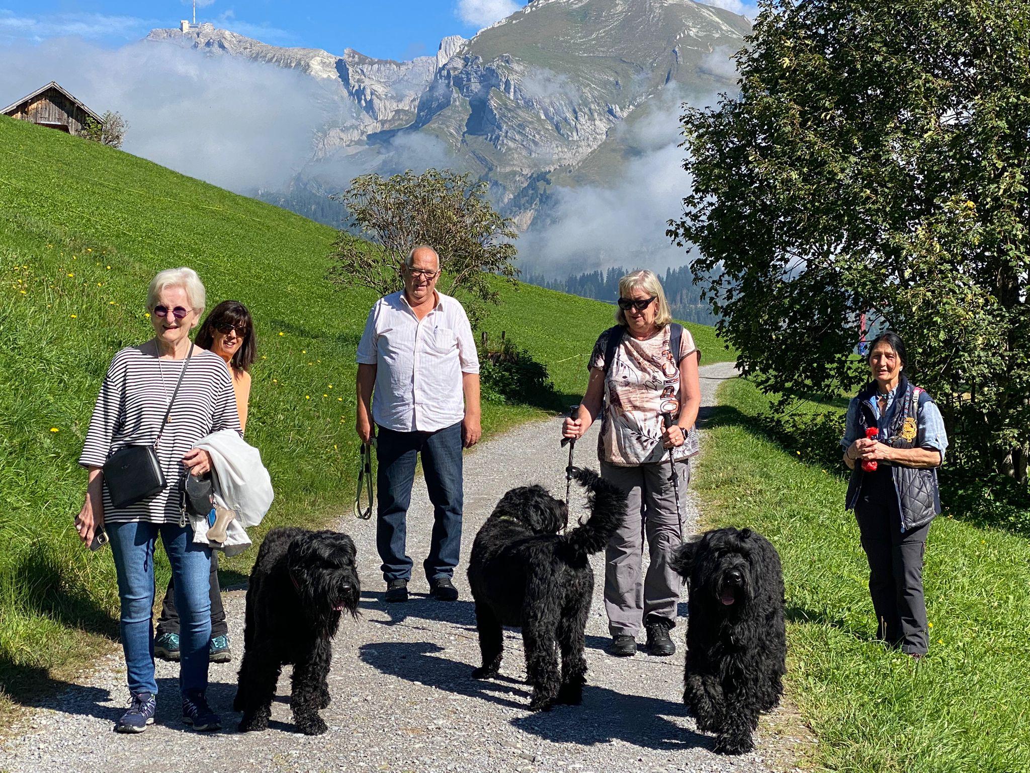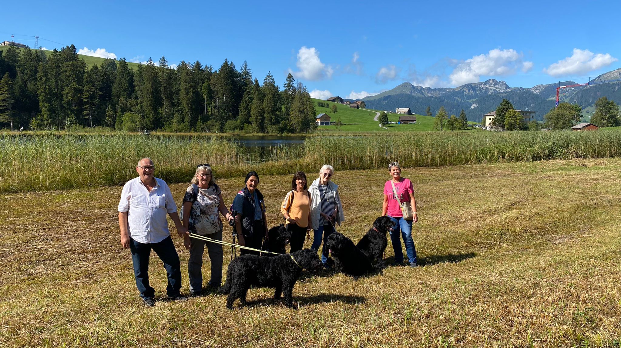 Wir haben uns dann einstimmig für einen Ausflug rund um den Schwendi-see entschieden. Das Wetter war herrlich und die Gartenterrasse Hotel Alpenrose lud anschliessend zum langen verweilen ein. Unsere schwarzen Russen konnten wir wunderbar im Schatten platzieren und einmal mehr, hatten wir vorbildliche, brave Hunde!